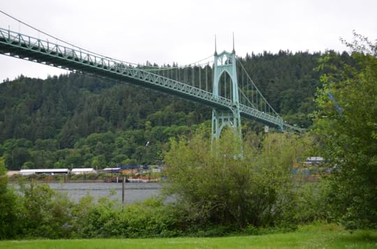 (St. John's Bridge over the Willamette River into Forest Park, where Jenny's dad lives.)
