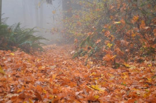 Alexis dashes off the deck and into the yard. We take the path covered in wood shavings down toward Cedar Creek, rattling over rocks and big enough for the fall salmon to come struggling up from the Sandy River. The wind, damp and crisp, smells of decaying leaves and cedar and Douglas fir trees, a trace of wood smoke on the air.