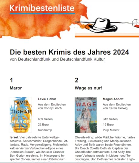 Over in Germany, Maror has picked up the #1 slot on the Krimibestenliste – a list of the best crime novels of the year, selected for Deutschlandfunk Kultur by a group of reviewers and crime fiction experts from across the German-language media landscape in Germany, Austria and Switzerland.