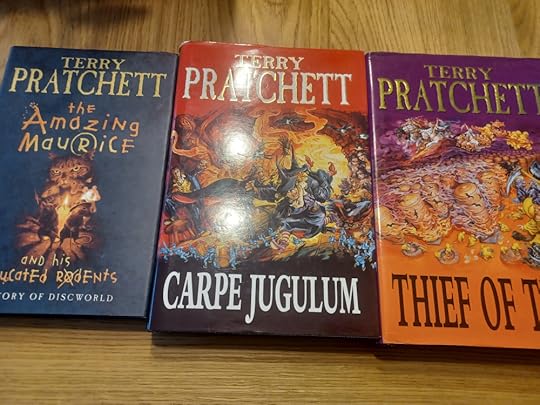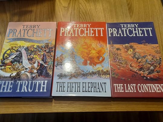 The first Pratchett book I bought in London was The Last Continent, which had just come out (listed below), and this was followed by books both new and, if I could find them, old (at some point I had first editions of Eric and Equal Rites in first edition, and others, but most of these went elsewhere around 2008).