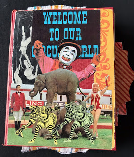 altered book. So, it's July. Though I have been gathering both my thoughts and images on my computer, for much of this Stay-at-Home time, I have been quasi-frozen. Like many of you, I have learned how to manage a Zoom call. I have rearranged my work spaces, including clearing out a lot of currently unused items from my art studio, to make room for more art supplies. In the process, I found some wonderful old artwork treasures that I'll share with you another time.