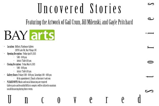 Uncovered Storiesfeaturing the artwork of Gail Crum, Jill Milenski and Gayle PritchardBAYarts, Playhouse Gallery28795 Lake Rd., Bay Village, Ohio 44140