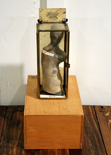 Gail's piece, shown above, finds meaning in uncovering the beauty in a cast-off cloth doll, which she placed in a glass case she lined with delicate handmade paper. She recasts the broken-down figure, ennobling it with beauty and grace. Indeed, she found her voice.