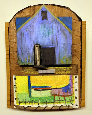 Uncovered Stories .As I was preparing for my current exhibition, I started working on several new house drawings for my series, including Traveler, left. The two-dimensional wooden house is mounted on another piece of wood replete with my ubiquitous marks. A sort of map is nailed to the bottom, the "ground" area, and a beach stick is attached at the bottom. My oldest brother died as I was completing it, so I decided to dedicate the piece to him. I added the word cut from an old dictionary, traveler, as a sort of send-off for his soul. The map will help him find his way. Traveler is also a metaphor for his Irish blood; he had even more Irish DNA than the rest of his siblings, and one of our Irish surnames is a "traveler" name. Rest in peace, my brother.