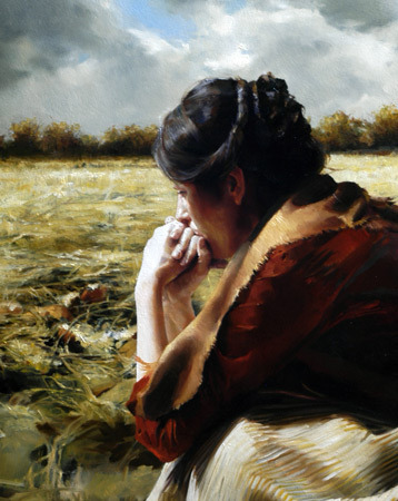 It is that ability to hearken to the whisperings and peace of the Spirit with which this painting is concerned.  The most succinct statement of the painting's theme is found in the reassurance of the Lord's own words, given not only to those who endured the dreadful persecutions and hardships of the 1830s, but to the faithful of all time, that He will extend His arm and support his people against all the fiery darts of the adversary; and be with them in every time of trouble (Doctrine and Covenants 3:8).