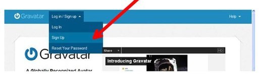 1. Log on to https://en.gravatar.com/ where you’ll see the above page. Click on the drop down menu and go to Sign up.
