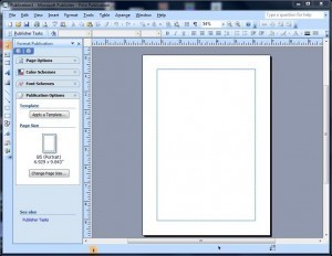 When you open up Publisher to create a new file, you just have to pick a blank page size. I usually pick one that’s close to what the book I’m writing would be in print form. For this one, we’re using the B5 paper size blank, which is a little less than 10” x 7”.