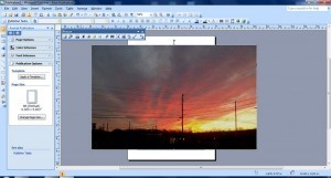The first thing you want to do is insert your picture (Insert > Picture > From File). Once again, I’m using the picture my wife Mona took of a sunset over Tamaqua, PA.