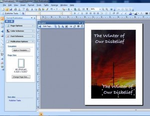 After Paint, another program that is useful for cover creations and is often on new computers (sometimes in limited trial versions) is Publisher. It was once a standalone program but has now been integrated into the Microsoft Office product suite.