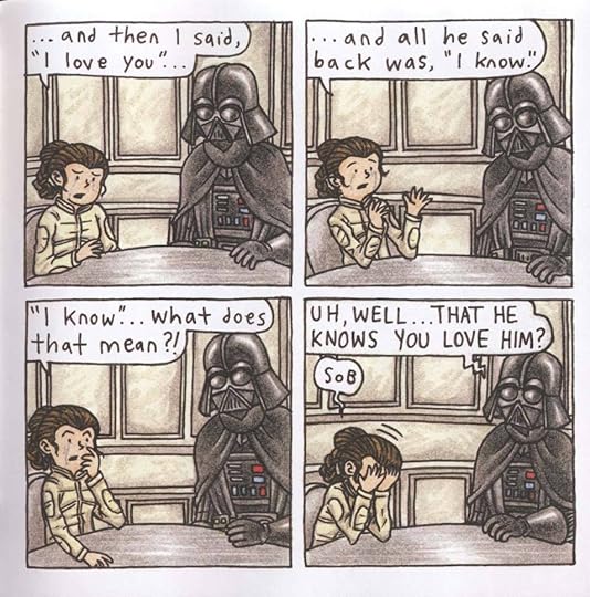 I DO think it's funny, reading other reviews, that people think it's stereotypical. I mean, yeah, it's stereotypical that a dad would have arguments with his daughter about leaving the house in a belly shirt. But I think that's really the whole point here. Leia is used as a device to put Darth Vader in humorous situations, not the other way around. It's funny to watch Darth Vad ...more