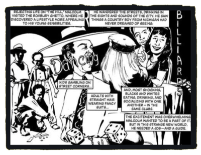 Malcolm X: A graphic Biography, was a very interesting book that allowed the reader to be filled with knowledge and not be bored because of the graphics it displayed. I believe the book was a good read and covered Malcolm X's life from beginning to end without missing any sort of important parts.