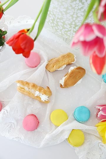Le scene di cibo sono davvero tante e soprattutto protagoniste. Marie Antoniette è finita più volte in classifica in articoli come “le dieci scene di cibi nei film di tutti i tempi” e cose così. Marie Antoniette che afferra solo una fragolina davanti a un tripudio di torte su meravigliose alzate come quasi a dare uno schiaffo alla povertà in questa metafora visiva è il riassunto perfetto. Ho scelto gli eclair e i macaron perché assolutamente rappresentativi. E la panna perché abbonda in ogni scena, esagerata, sontuosa e sensuale come solo la panna sa essere.