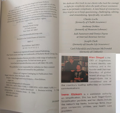 1) The "simplified" co-authorship use of the term "we" when it was separate writers combining sections was clunky. I could spot the 2 voices very easily and it was clear to see why some sites only put Alan Siegel as the single author and leave off Irene Etzkrom.