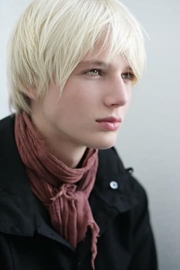 Photo Description: The young man's green eyes can just be seen peeking out beneath the windblown cap of white blond hair. His pale face and blushing cheek only add to his beauty. He stares pensively into the distance.