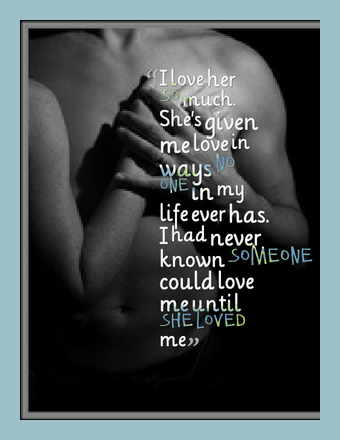 Now my wife stands in this room I filled with roses for her, and I have. NO. WORDS. No fucking words to tell her. The way I need her. The way I want her. The way I love her. How every day I wake up a happy man, and go to sleep a happy man, sure that I can't love her any more than I already do. But every day, the impossible happens, and I love her more. Her smiles, her strength, her dedication to our son, to me, everything about her is perfect for me.