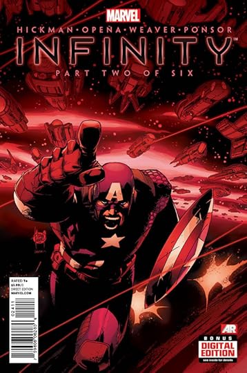 My review here concerns the Avengers part of the conflict so the hardcover mentioned here but the part of the 6 infinity comics that deal with the Builders too. And I have to say for me it is without a doubt the best crossover of the last few years.( Age of Ultron gets a 2 stars by comparison). This is as cosmic as it can get with galactic empires fighting each others and the Avengers led by Captain American in the middle. Infinity 4 and 5 especially have some panels that will stay in reader's memory for a long time ( with a special tribute to the raising of the flag at Iwo Jima in issue 5).
