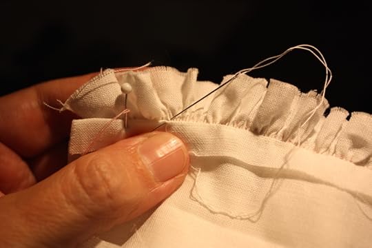 It’s a distant task (she does it at home, without having measured him) but also an intimate one, reflecting her contradictory feelings. The day after I read this, I learned that Catherine of Aragon continued to embroider Henry VIII’s shirts, long after he left her for Anne Boleyn - who objected in vain (see entry for Season 2, Episode 1, quoting Antonia Fraser HERE).