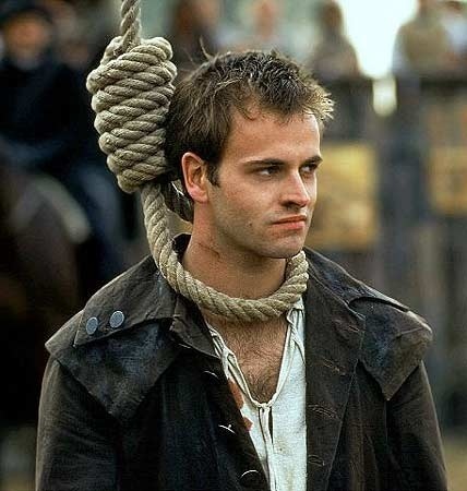 Photo Description: A man in simple leather coat stands in what could be a crowded arena, a noose is around his neck as if he is about to be hung. His expression is defiant as he looks off to the side— he will not be beaten by this— but he also looks a little resigned, as if he knows this is it for him. There is a blood stain on his tunic, near his shoulder.