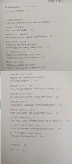 This is the table of contents; as you can see, the discussion in the book focuses with great rigour in the validity of the science behind the CAM (Complementary Alternative Medicine).