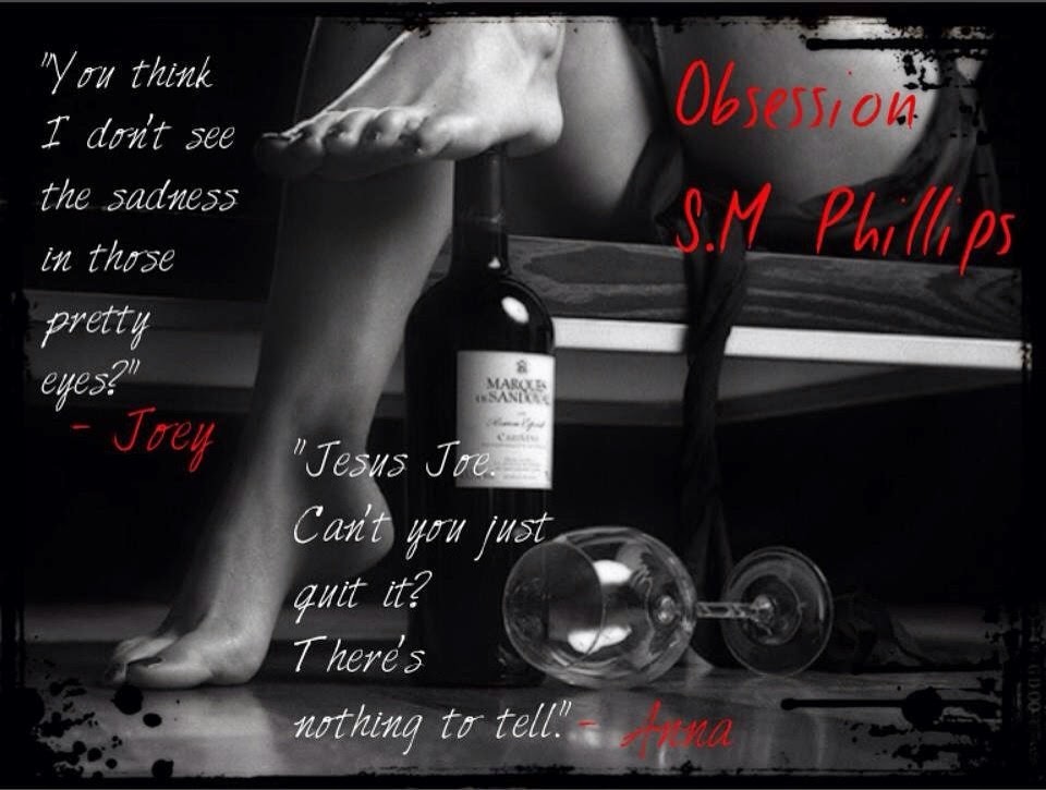 Wow, what a ending.. I am a first time reader of this S.M. Phillips, and I found Obsession to be a very good read. There is very little background given on the main characters Jensen and Anna, but It leaves a since of mystery to them and I confident it will all come out in the end. Jensen and Anna definitely have great chemistry. However do not expect any steamy hot sex scenes, they start off that way, but are cut off immediately jumping to later that night or next day. This was a little disappointing only because Jensen has a dominant character, but you never get to see that. However it doesn't take away from the story. This was still a fabulous read that ends with a cliffhanger and I can not wait to start the next book.
