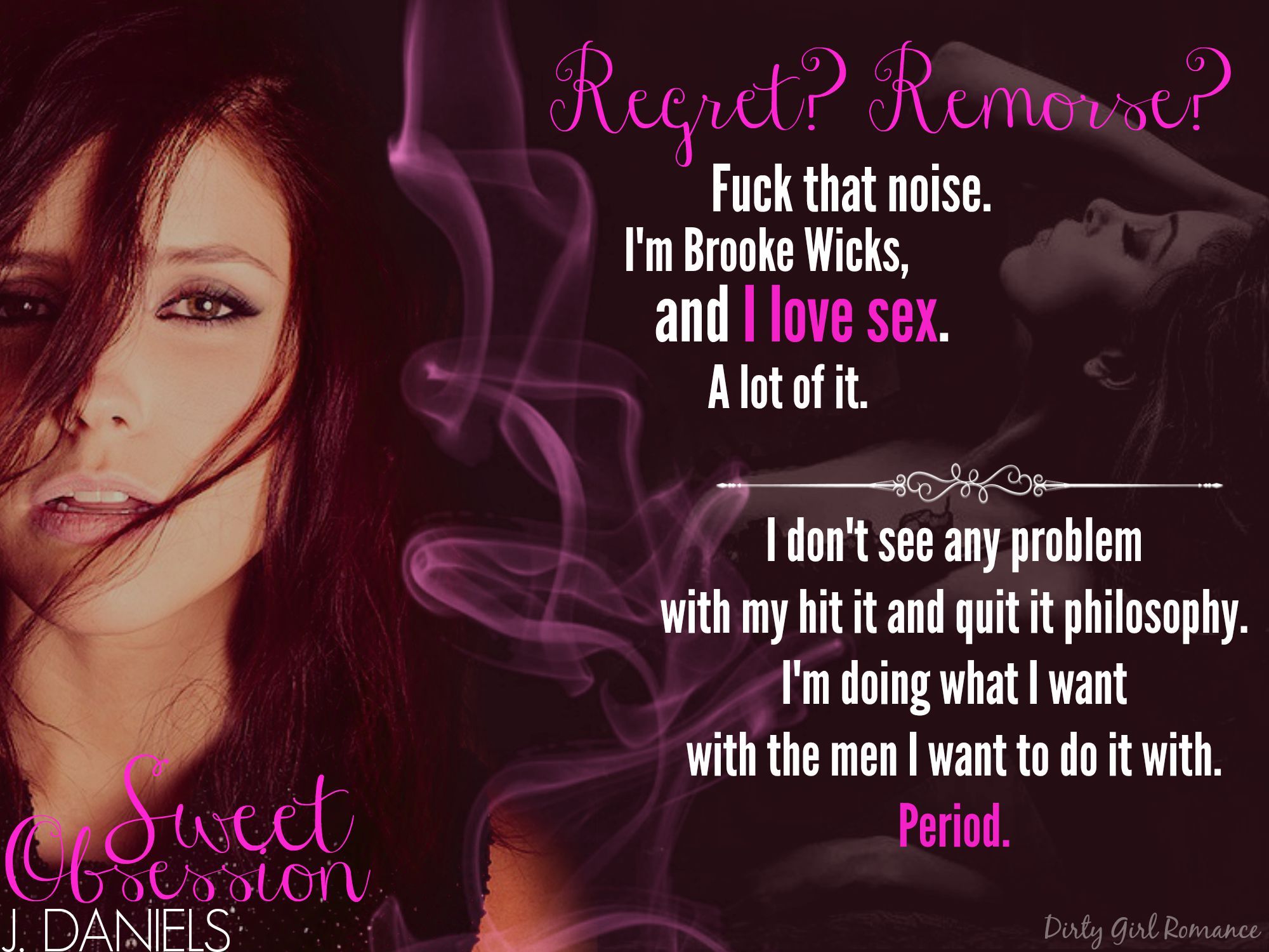 I’m Brooke Wicks, and I love sex. A lot of it. I don’t see any problem with my hit it and quit it philosophy. I’m doing what I want with the men I want to do it with. Period.That pretty much sums up Brooke’s no muss, no fuss outlook on dating. She’s a grab-life-by-the-balls, take-no-prisoners kind of woman and it works for her. She has a job that she loves, great friends, confidence to spare, and regular – if not always memorable – sex.