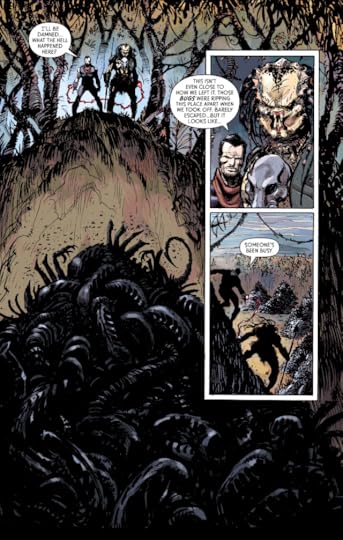 Las ilustraciones son buenas y el guión, aunque flojo, nos deja una relación inusualmente entretenida entre los protagonistas, un superviviente humano al que no sabes si quieres ver morir por cabrón, y un Predator que le tiene preso al que le coges simpatía por puro síndrome de Estocolmo. No me había planteado hasta ahora que se puede escribir una historia en la que quieres que los protagonistas vivan para saber qué más les va a ocurrir, pero pensando en que sus muertes serían totalmente merecidas.
