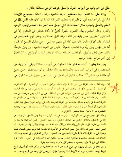 يعلق الدكتور المطيري قائلا : وفي كلامه هذا نظر إذ لم يتتابع العلماء خلفاً عن سلف على الاحتجاج بهذا الحديث، بل تنكب عن إخراجه الشيخان ولم يحتجا بشيء من أسانيد وطرق هذا الحديث مع كثرتها، وإنما صححه المتساهلون كالترمذي وابن حبان والحاكم ومن حديث أبي هريرة وحده فقط، وليس فيه زيادة " كلها في النار إلا واحدة"، ومداره على محمد بن عمرو، وكل من لم يحتج بما تفرد به محمد بن عمرو أو لم يحتج به مطلقاً من المتقدمين فهو قائل برد هذا الحديث، ولا يشترط أن يحكم الإمام الناقد على كل حديث بعينه بالرد بل حكمه على الراوي حكم على مروياته إذا لم يتابع عليها، وليس في كل طرق هذا الحديث طريق واحد أجمع المتقدمون على الاحتجاج بكل رواته، فلا يمكن والحال هذه ادعاء تتابع العلماء خلفا عن سلف على الاحتجاج بهذا الحديث، نعم لو جاء هذا الحديث من طريق احتج البخاري ومسلم به ـ وإن لم يخرجاه ـ لكان لهذا القول وجه والأمر على خلاف ذلك فلا تصح هذه الدعوى، وتصحيح المتساهلين في التصحيح كالترمذي وابن حبان والحاكم لا يخرجه عن كونه حديثا غريبا تفرد به راو متكلم فيه، وتنكب البخاري ومسلم عن الاحتجاج بمحمد بن عمرو كاف في إثبات هذه الدعوى، وكذا تنكبهما عن إخراج هذا الحديث مع كثرة طرقه