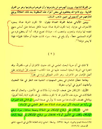 ومع كثرة الجدل حول تلك القضايا أخذ الإشكال يدخل إلى عدد من المسائل المتعلقة بها، وطفق عدد من الدارسين يثير حزمة من التساؤلات والإشكالات حول مفهوم حديث الافتراق، وبدا عدد منهم يشكك في صحة مذهب أئمة السلف ومطابقته لما كان عليه الصحابة الكرام .