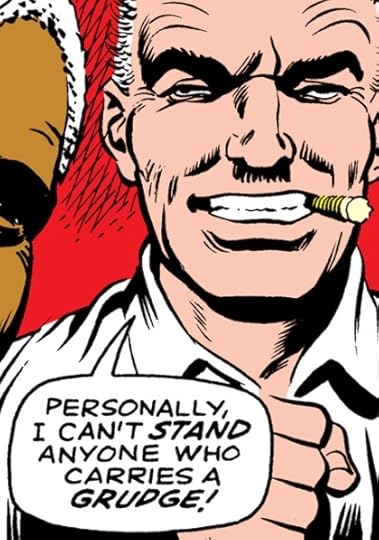 Spidey is left unconscious after his battle with the Vulture and the police debate using the opportunity to de-mask him: “Whaddaya think, Cap’n Stacy? Maybe we should take his mask off while he’s just lyin’ there?” “I wouldn’t do it, Tom! Not without expert legal advice!” – Captain Stacy