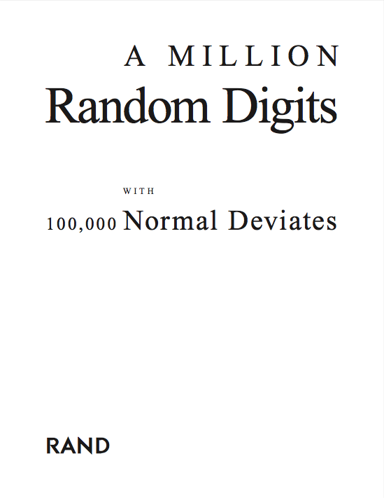 I've found this book to be incredibly useful in my life. If I ever need a number, I just open it to a random page and point my finger down, and there's a number!