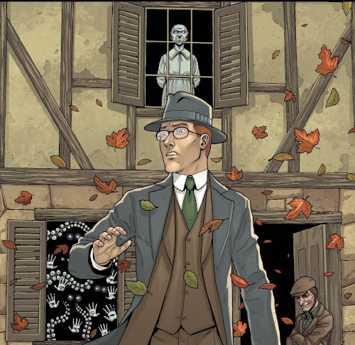 This comic series is Alan Moore's take on the Lovecraft Mythos, but rather than just write a patische he is taking a different approach and building this story around Lovecraft's work directly. A writer is researching a book and searching for the Necronomicon even though I don't think the book has been called that yet. Along the way he encounters characters and places from Lovecraft's stories. So far we've seen hints of Cool Air, Shadow Over Innsmouth, The Dunwich Horror and others.