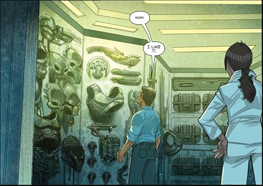 The art is fantastic, though. I also really love the design of the Predators and the simplicity of their gear (which is a plot point).