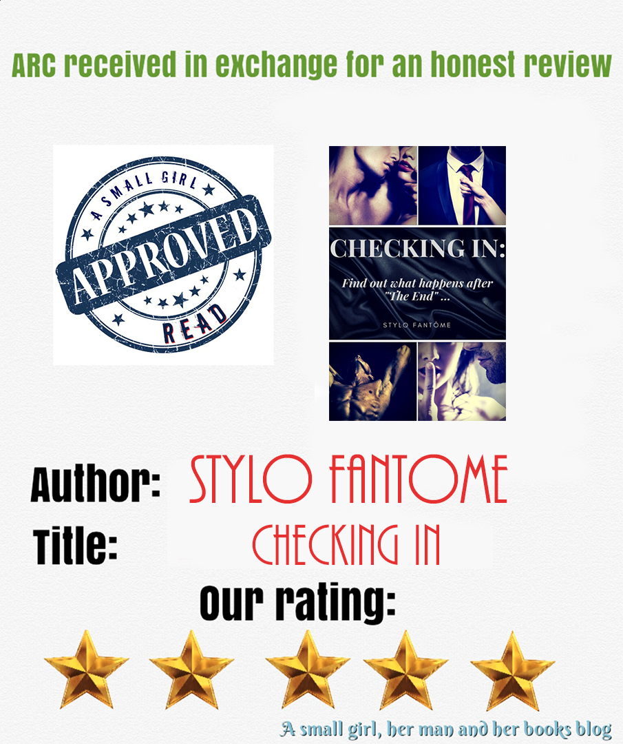 I must confess.......I have loved all of Stylo Fantôme’s book. Her characters are fun, sassy, quirky and most of all endearing. Some more than others but all are wonderful. Checking In is just that........checking in with all her wonderful characters after “The End” is written. Each “checking in” story (The Bad Ones, My Time in the Affair, The Mercenaries: Law, Muscle Memory, Twin Estates, While I Was Away(a dabble of something new) and The Kane Series) brings a smile and a sense of nostalgia. This book is definitely for readers/fans of this author. Which each chapter, with each different story, my smile grew bigger and bigger. When you love stories, getting extra tidbits about characters you love is rewarding and invigorating.