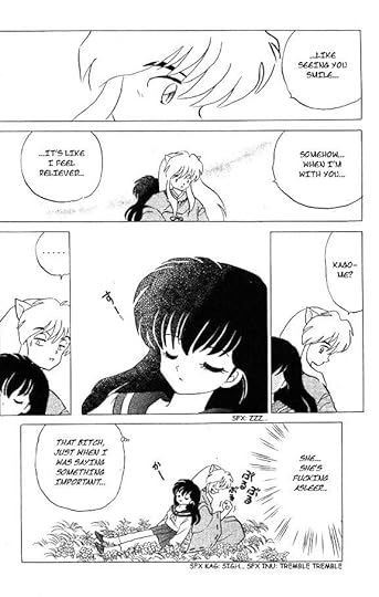 Inuyasha never kisses Kagome once in the manga and here he is in vol 8 kissing Kikyo??????? Takahashi really has a weakness in developing her romances huh?????