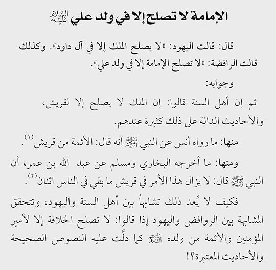 أضيف إلى ما ذكره الكاتب أن في صحيح مسلم أحاديث ترتبط بالحديث المذكور وتخدم الشيعة وهو حديث الاثني عشر خليفة: عن جابر بن سمرة قال: دخلت مع أبي على النبي صلى الله عليه وسلم، فسمعته يقول: إن هذا الأمر لا ينقضي حتى يمضي فيهم اثنا عشر خليفة، قال: ثم تكلم بكلام خفي علي، قال: فقلت لأبي: ما قال؟ قال: كلهم من قريش. وعن الرواي السابق: سمعت رسول الله صلى الله عليه وسلم يقول: لا يزال الإسلام عزيزا إلى اثني عشر خليفة، ثم قال كلمة لم أفهمها، فقلت لأبي: ما قال؟ فقال: كلهم من قريش. ومن يريد أن يتعرف على حيرة أهل السنة في فهم معنى الحديث فليراجع كتابا لنفس الكاتب اسمه مسائل خلافية حار فيها أهل السنة ويفضل أن يقرأ ضمن خطة قراءة سأضعها بالأسفل.