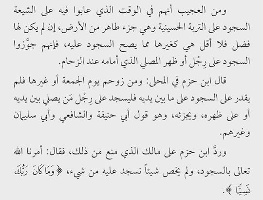 وأضيف إلى ذكر الكاتب للسجود على التربة بأن في البخاري أن الرسول صلى الله عليه وآله سجد على التراب بل وعلى الطين: 1- أن النبي صلى الله عليه وسلم قال في الرجل يسوي التراب حيث يسجد قال: إن كنت فاعلا فواحدة. 2- قرأ النبي صلى الله عليه وسلم النجم بمكة فسجد فيها وسجد من معه غير شيخ أخذ كفا من حصى أو تراب فرفعه إلى جبهته، وقال: يكفيني هذا فرأيته بعد ذلك قتل كافرا. 3- فبصرت عيني رسول الله صلى الله عليه وسلم، ونظرت إليه انصرف من الصبح ووجهه ممتلئ طينا وماء.