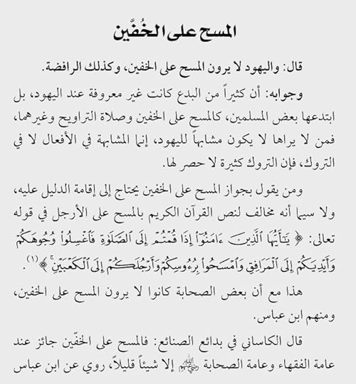 ------------ القسم الثاني من المراجعة: هذا الكتاب رد على ما نقله ابن تيمية من كلام الإمام الشعبي في الجزء الأول من منهاج السنة النبوية لابن تيمية والكلام المنقول عن الشعبي عنوانه العريض أن الشيعة الاثني عشرية يشابهون اليهود والنصارى في الأحكام والعقائد، والقصد من إظهار التشابهات المزعومة ليس علميًا، بل القصد تنفير المسلم العامي وخاصة السني من التفكير في احتمالية كون الشيعي على حق، وراجع مراجعتي على كتاب منهاج السنة لتعرف المزيد.