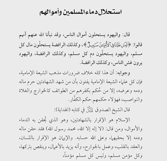 وأضيف في الرد على دعوى استحلال دماء المسلمين، أنه يجب أولًا النظر في مطابقة فعل المستحل للدماء للمذهب الذي يصرح بالانتماء إليه، لأنه ليس كل فعل يصدر عن الإنسان فهو مطابق لمرجعيته! وأضيف أيضًا أن ابن تيمية في "منهاج السنة" و "مجموع الفتاوى" اعتبر في قول من أقواله المتناقضة أن الاثني عشرية مسلمون ونشروا الإسلام في هذه الصورة: