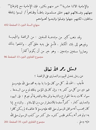 أخيرًا لا تحتاج لتكون اثني عشريا حتى تلعن ابن تيمية، بل يكفي أن تعلم بأن الكذب الموجود من عوامل حصول الاقتتال الطائفي، فكثير من بلاوينا بسبب جهل كل فريق بما لدى الآخر، ولا زلت أقول بأن سماع كامل الحقائق المرة والغضب في ساعتها ثم الهدوء والتعايش، أفضل من ضياع الحقيقة بين الأكاذيب ثم تجدد الغضب مرات ومرات كلما ظهرت حقيقة. يجب أن يكون حال الروافض وأهل السنة من المكاشفة الصريحة كحال المسلمين مع النصارى، فمع العلم أن قول النصارى لعنهم الله بأبوة الله تعالى لعيسى عليه السلام (والذي {تكاد السماوات يتفطرن منه}) أبشع عند السني من أي قول شيعي، إلا أن الهدوء في تعامل السني مع النصراني واضح بل ربما ظهرت الابتسامات والأحضان! لماذا حدث هذا؟ لأن السني يعلم عن كل مخازي النصراني فلا يحتاج للمزيد من الغضب والاحتقان، إذا فلنطبق هذا الأمر مع المختلفين عنا مذهبيا، هل هذا صعب؟ تعال يا فلان هذه عقيدتي في هذه الشخصية الخلافية ووصلت لحكمي فيها عن اجتهاد في النصوص، كما وصلت أنت لحكمك فيها عن اجتهادك، لكن دعنا نتعايش ألم نمل من العنف وتقييد الحريات؟ ربما يعبر عن مقصودي الشيخ ياسر الحبيب حين جعل الصراحة من أسباب الوحدة الإسلامية وتكلم عن حق اهل السنة في التصريح بعقائدهم، في يوتيوب بعنوان "الشيخ الحبيب نعم ندعو إلى الوحدة الإسلامية" أو عبر البحث في اليوتيوب عن كود VRQV_WYWDwU