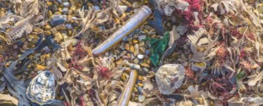 Image: Seaweed, razor shells and crab shells on tideline (Source)