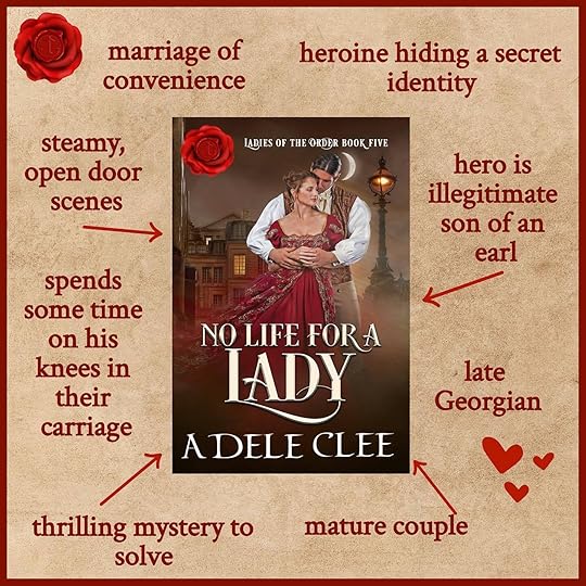 I was able to read an advance copy of No Life for a Lady, & was excited to dig in. What a bombshell of a first chapter! Olivia Trimble has always been a bit of a mysterious figure in the previous books. It was great to finally get inside her head & hear her story. After reading what Olivia’s gone through, it’s easy to understand why she’s kept herself virtually hidden, & has a healthy dose of skepticism regarding men. When she meets Alexander Grayson, I think she’s surprised to find her usual distrust of men doesn’t seem to apply w/him. I think their mutually beneficial relationship ends up being one of the best in the series. By this point, I didn’t doubt Daventry had made another brilliant match, but I still looked forward to the steps involved in the characters realizing it, while successfully solving the case. One of my favorite things about Adele Clee’s books is that there’s usually a fascinating case or mystery to solve along the way. I honestly couldn’t guess who was going to be revealed as the culprit in this one. I’ve really enjoyed this series & am going to miss these characters. Maybe they’ll continue to pop up here & there in the next series.