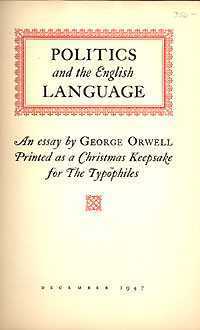 George Orwell uses this clear and beautiful little book, Politics and the English Language, to show that writing about politics, and particularly the writing of political speeches and propaganda, encourages a particularly vile form of English. As Orwell says, "Political language — and with variations this is true of all political parties, from Conservatives to Anarchists — is designed to make lies sound truthful and murder respectable, and to give an appearance of solidity to pure wind." Vague words like democracy, freedom, realistic, and justice are chosen to swindle and obfuscate. Euphemisms and deliberate vagueness are used to minimize terrible crimes. Orwell gives the example of "some comfortable English professor defending Russian totalitarianism" with: