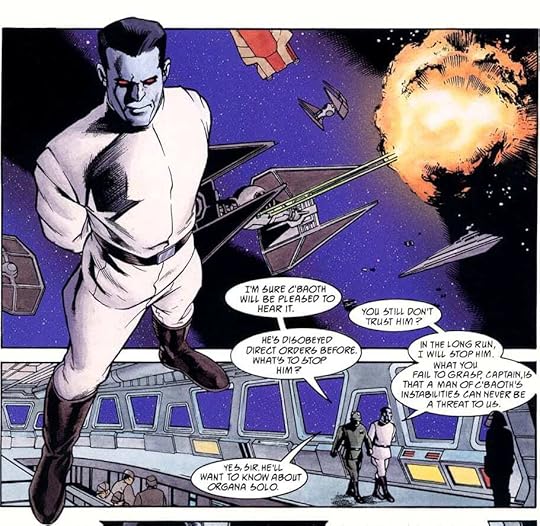 Strangely, Thrawn himself doesn't have much of a presence. He never really feels that threatening. Rogue smugglers and Master C'Baoth actually seem much more threatening.
