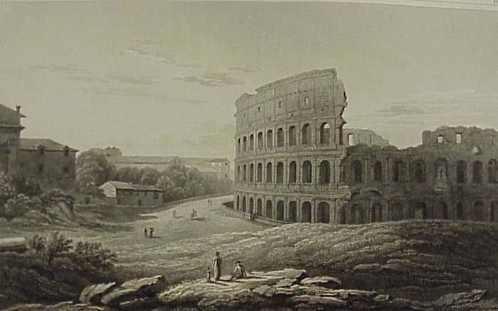 • “The Colosseum. Already its golden flank was drowned in purple shadow, and above it the sky curved crystal clear, without light or color. It was the moment when afternoon and evening hang balanced in midheaven.”