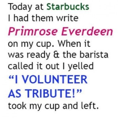 And now … from my Facebook Fan page, which I got from Pinterest – a lot of people, including non-Hunger Games fans (me) found this funny!