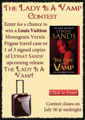 Now just want to mention this – paranormal author Lynsay Sands is running a contest near and dear to my heart – THE LADY IS A VAMP in honor of her upcoming release by the same name! Check it out. Enter. I know I did!
