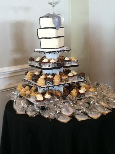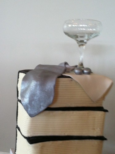 Yes, Yes, I’ll get to the luncheon. Very tastefully done, very classy, and yes my club and manager did a phenomenal job. Billed as a Diva Mom’s Mother’s Day Luncheon featuring E.L. James, whose The View clip had shown that same morning, they also had a stylist speak about women, mother’s and dressing and style. There was a cake (see photo) – a beautiful, white cake in the shape of stacked books with a gray tie on top, a champagne glass, and silver balls … read the book if you don’t know what the balls are for. The rest of this blog will be mortifying enough without me explaining THOSE here. LOL! Below the books were adorable mini cupcakes and below those … drumroll please … cookies with handcuffs on some and gray ties on the others.
