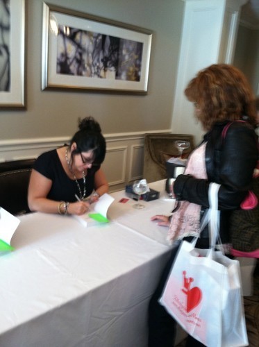 There were goody bags courtesy of Diva Moms, filled with very mommy-lissious things, like coupons, toddler tapes, and things that were good for younger moms. I’m worrying about my daughter driving, so that wasn’t for me. But I did love the bag, which said – and again read the book if you are clueless – LATERS Divalysscious Baby, a rubber bracelet with the same (or similar saying). I wish I could have gotten my bookmarks into those goodie bags at every luncheon E.L. James did! Whew. HUGE amounts of people at each. Talk about reaching new audience! Crazy!