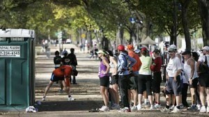 Thankfully, the race started before I collapsed from anxiety. It was cool, crisp, and sunny, perfect running weather. The first seven miles flew by, then the fettucini Alfredo kicked in. I will spare you the graphic details. Let's just say I now hold the record for Number Of Panicked Port-A-Potty Stops During A Marathon.