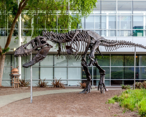 As you know, there's a T-rex skeleton on the Googleplex campus in Mountain View, California. (Discussed before in SRS.) Here's Stan, the Google T-rex with flamingos...